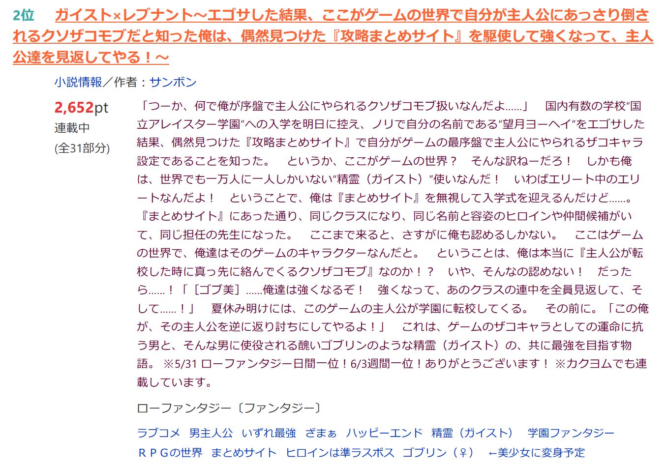 低ポイントでも上位に食い込めるローファンで閲覧ポイント稼ぎしてからハイファンに切り替えてハイファン上位の看板手に入れて書籍化狙うやつもいる - 29 名前:番組の途中ですが翡翠の名無しがお送りします 投稿日時:2021/06/06(日) 21:07:17.13 ID:n/Q2mpCU00606
