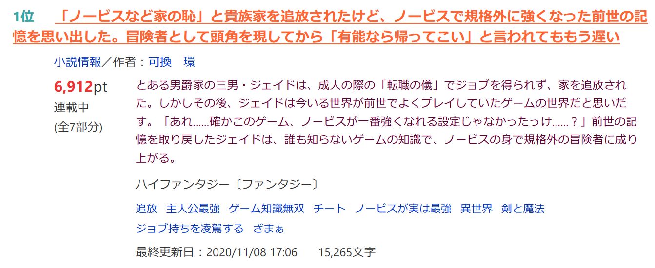 - ハイファンタジーのランキングの半分がもう遅い系でワロタ
