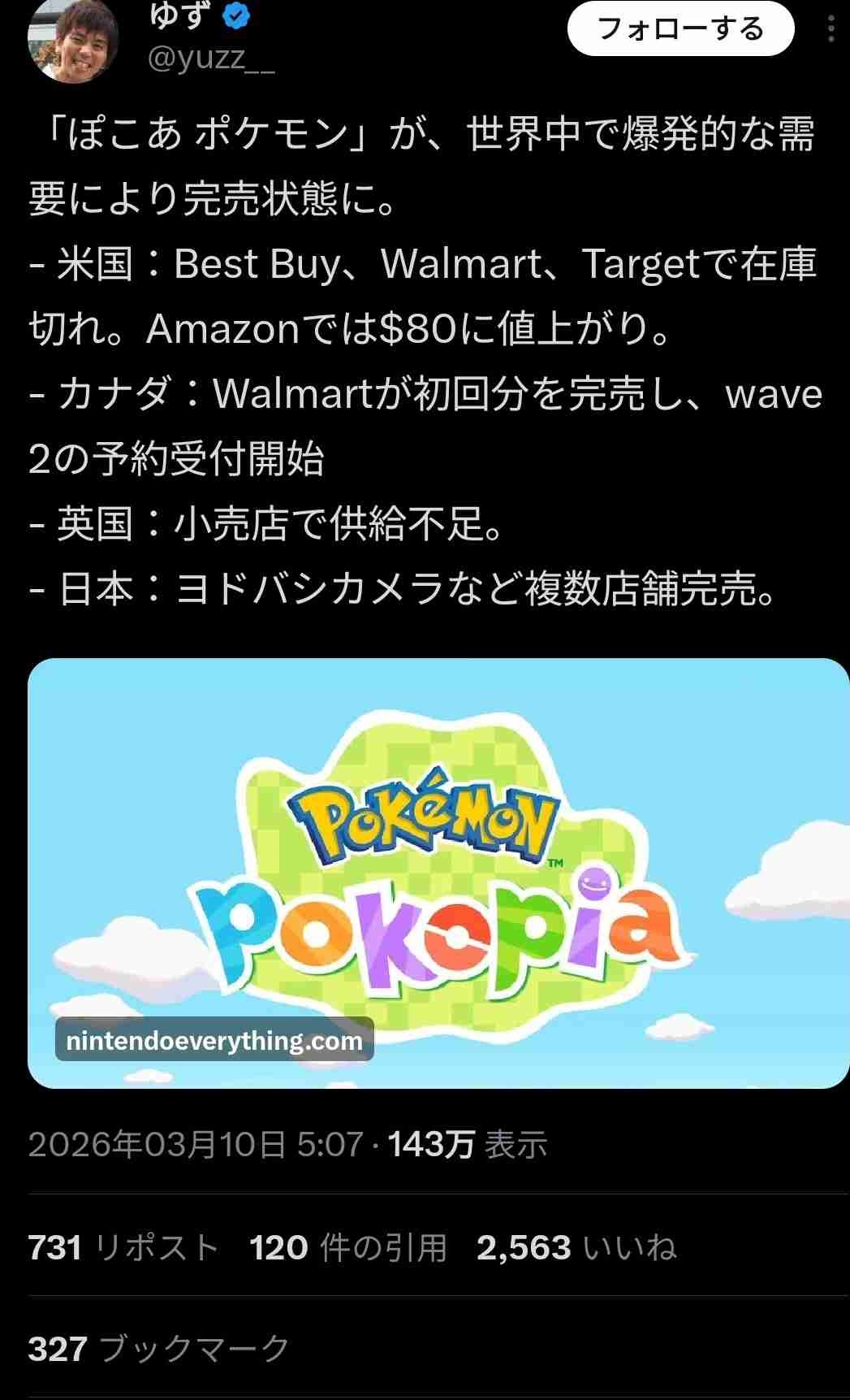 「ぽこあ ポケモン」が、世界中で爆発的な需要により完売状態に。