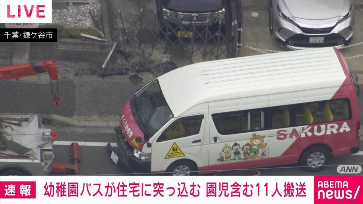 千葉県鎌ケ谷市で幼稚園バスが住宅に突っ込み、園児を含む11人が病院に搬送されました。運転手の意識がないということです。