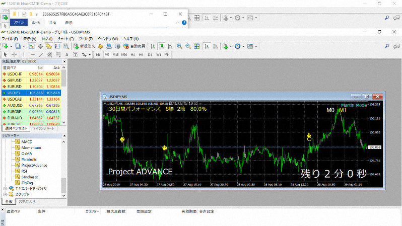 為替の上下を予測しているとされる黄色の矢印がチャート上に現れる