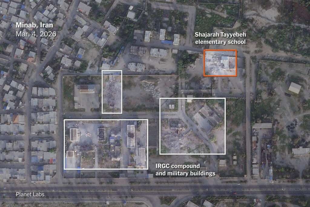 先月28日のアメリカとイスラエルによる先制攻撃では、イラン南部にある革命防衛隊の海軍関連施設が攻撃を受けていて、衛星写真ではそのすぐ横にある小学校が大きく破壊されているのが確認されています。