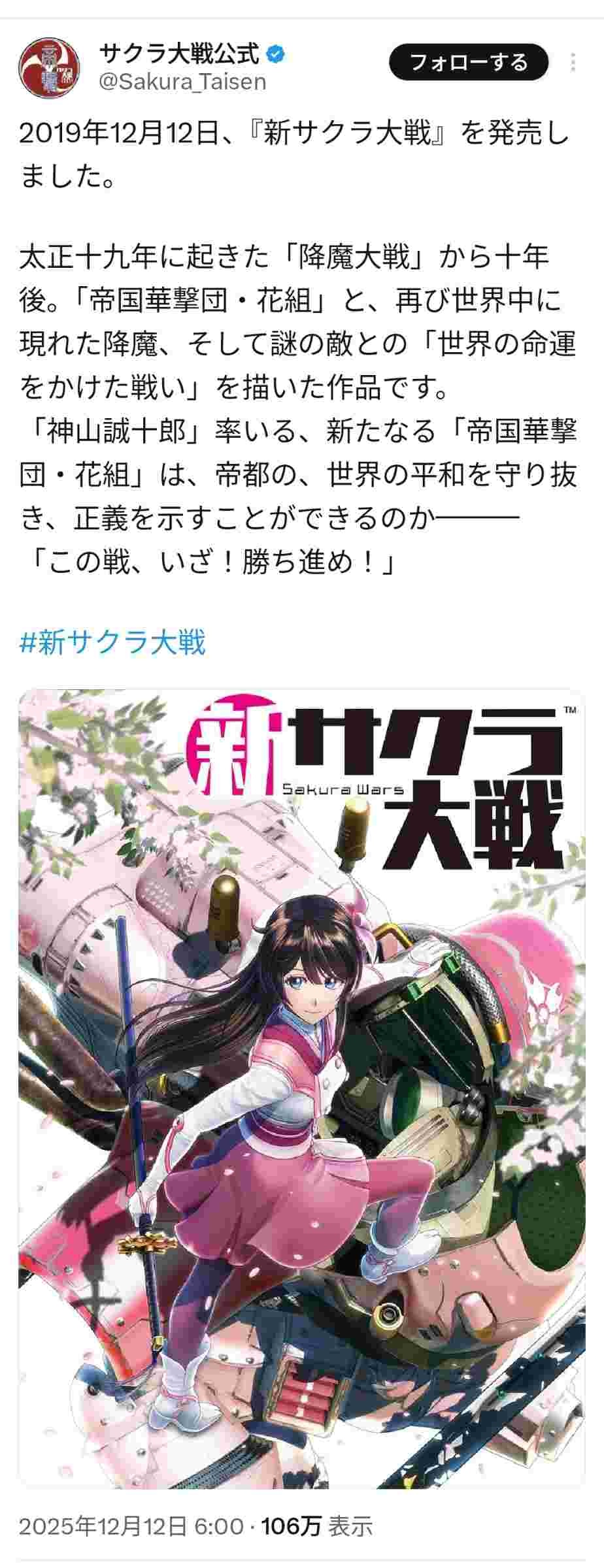 いや終わってるじゃん、サクラ大戦・・・と思ったら新の方かよw