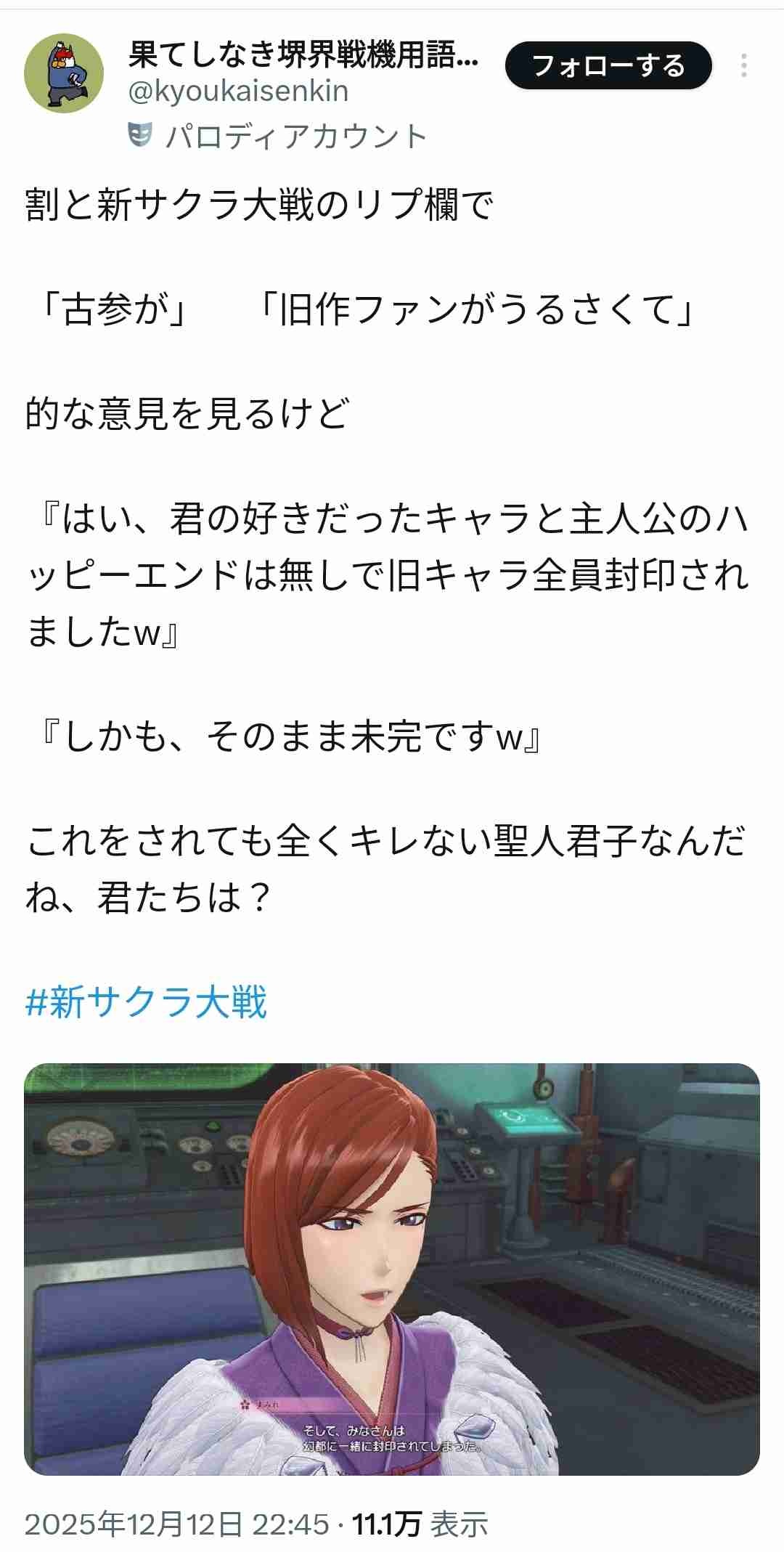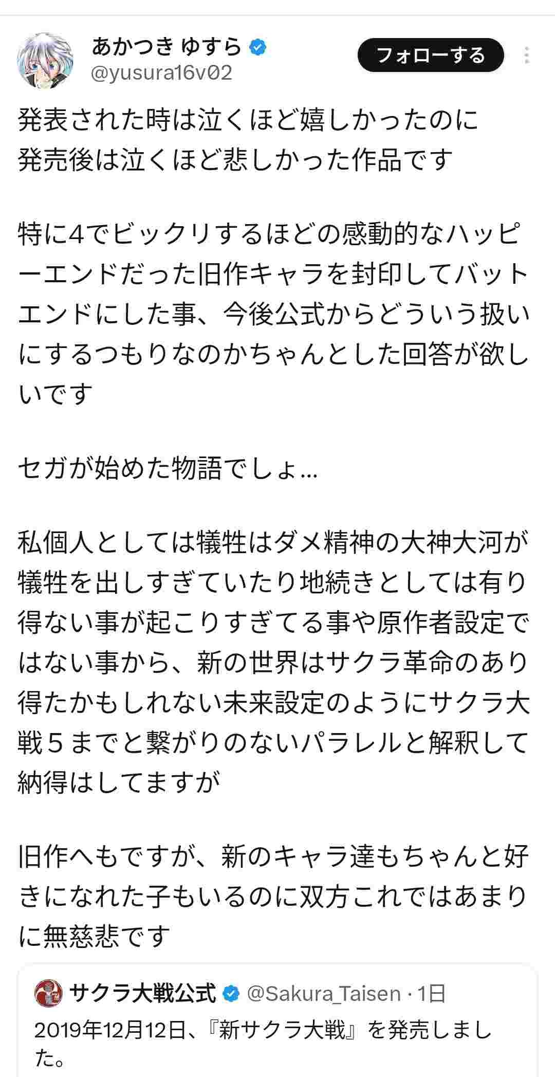 いや終わってるじゃん、サクラ大戦・・・と思ったら新の方かよw