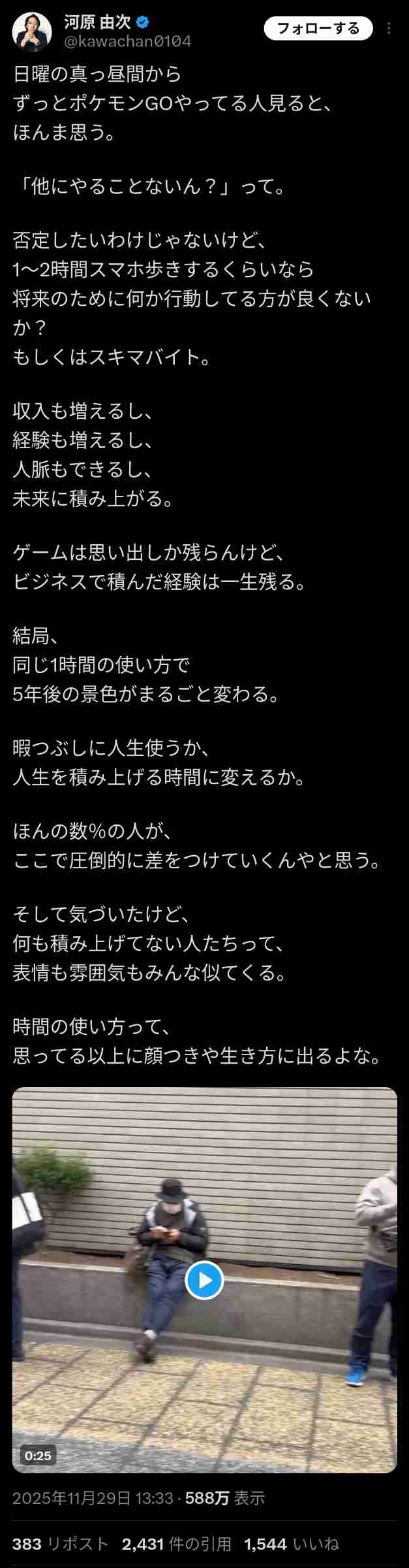 スキマバイト会社社長「日曜の真っ昼間からずっとポケモンGOやってる暇人いたから盗撮したw」→大炎上