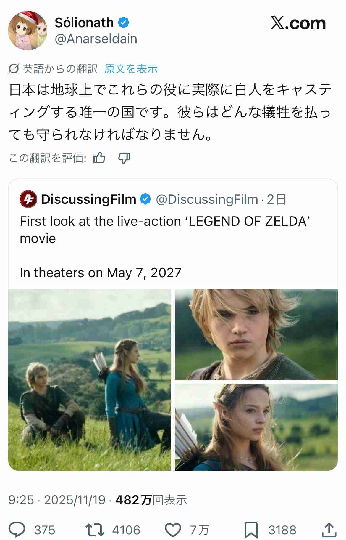 ゼルダ役に白人美少女をキャスティングした日本に世界が驚愕中www