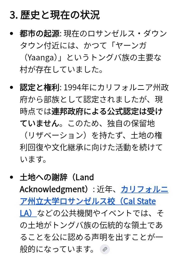 「今後の協議では、ロサンゼルス盆地全体がガブリエレノ・トングバ族の領土であり続けることを国民に理解してもらうために、この部族について明確に言及されることを希望する」