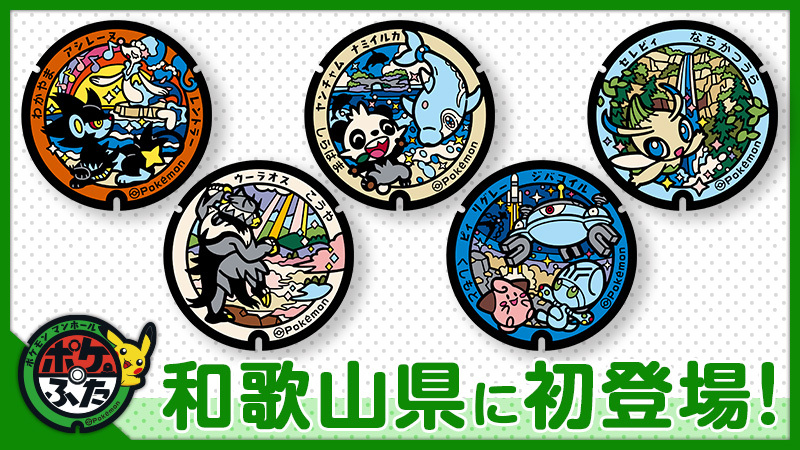 『ポケモン』セレビィ、アシレーヌたちがデザインされた“ポケふた”が公開。全5種が和歌山の5市町に設置