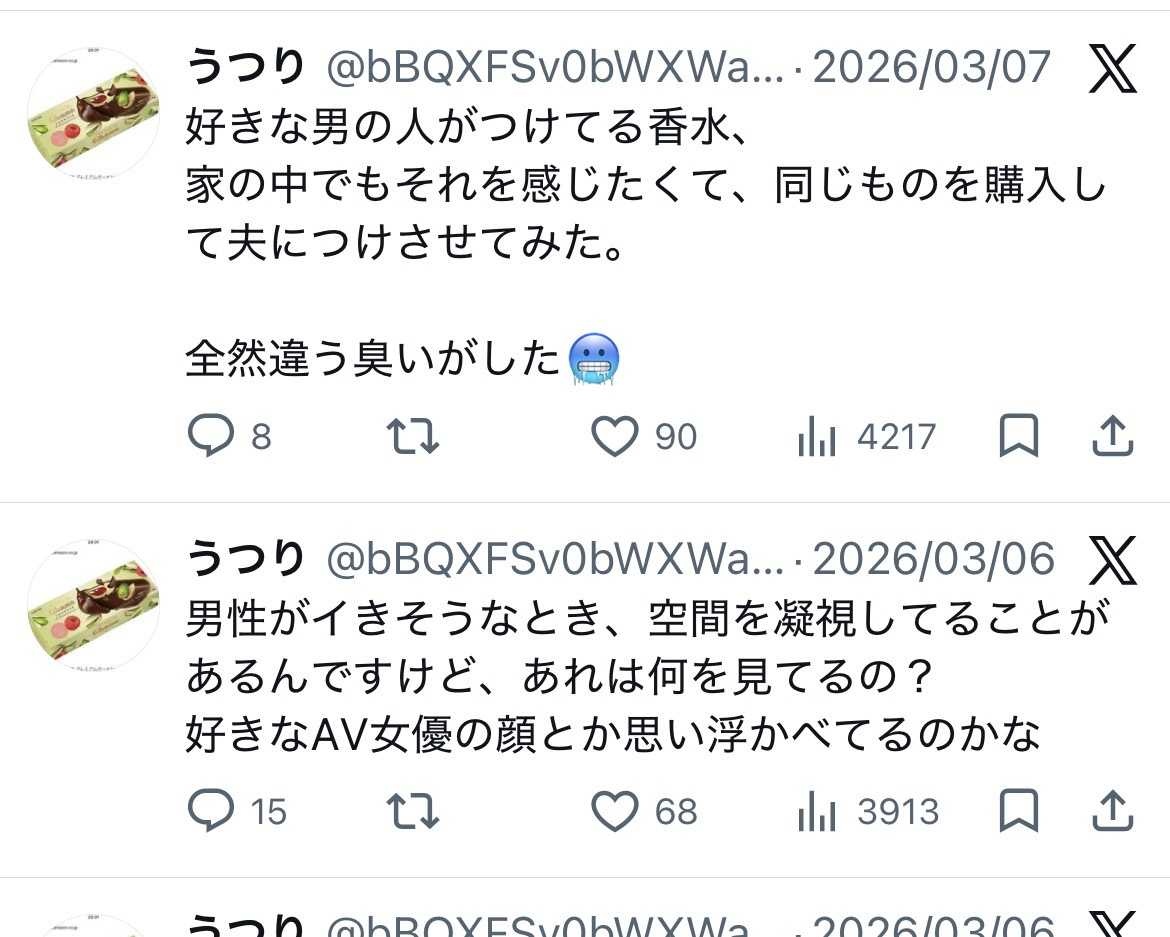 たしかに男の妄想垢でもおかしくない