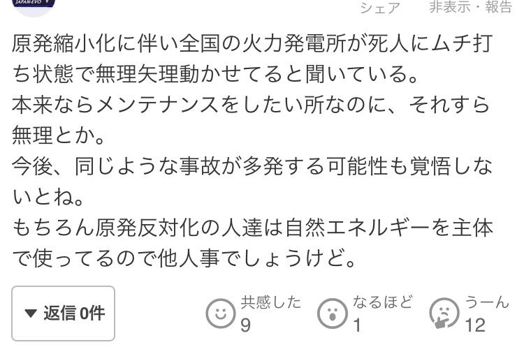 ヤフコメ民、発電所事故を受け完全に現実逃避モードへ移行!「原発縮小が悪い!」「DSの仕業だ!」「競馬の話かと思った!」