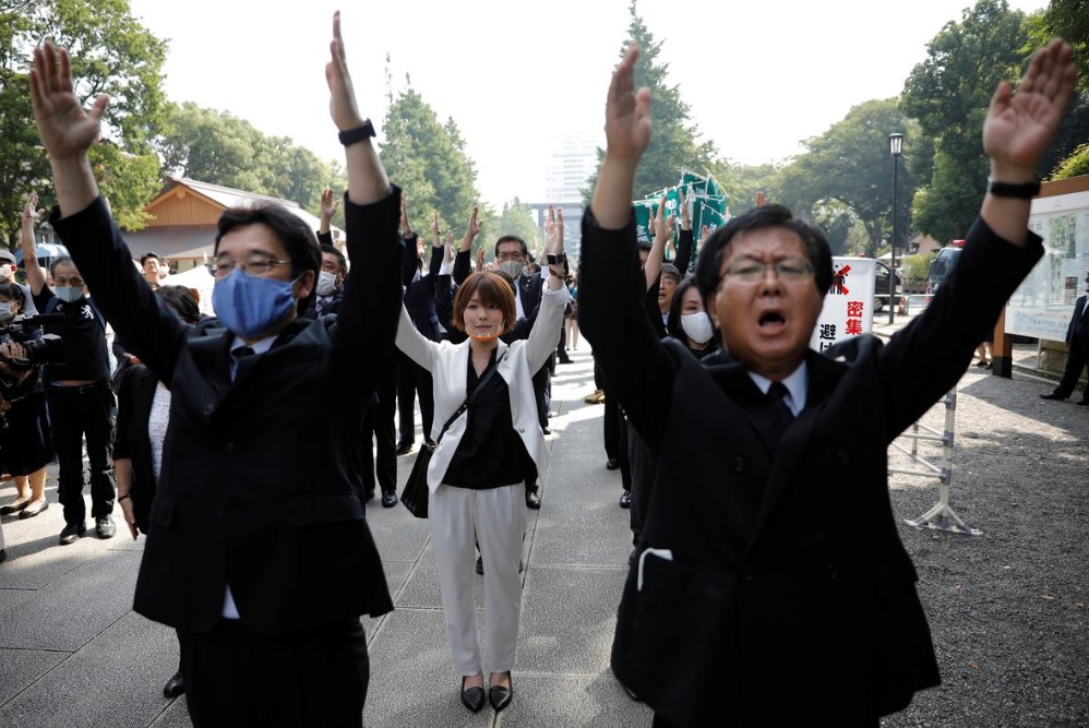 日本の安倍晋三首相は土曜日に戦死した東京の靖国神社に儀式の供物を送りました-第二次世界大戦での日本の降伏75周年-中国と韓国を怒らせる個人的な訪問を避けました。