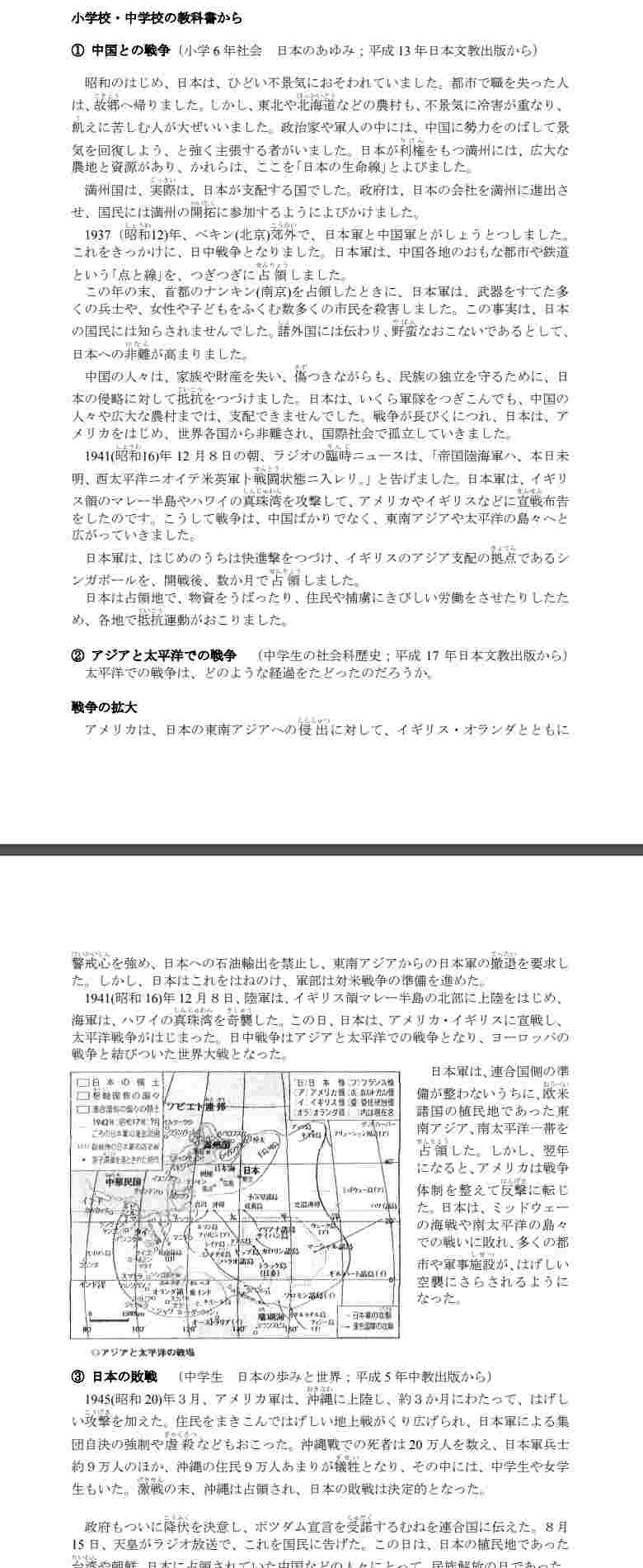 日中戦争を詳しく教えたら、防衛戦争という前提が崩壊してしまうからね