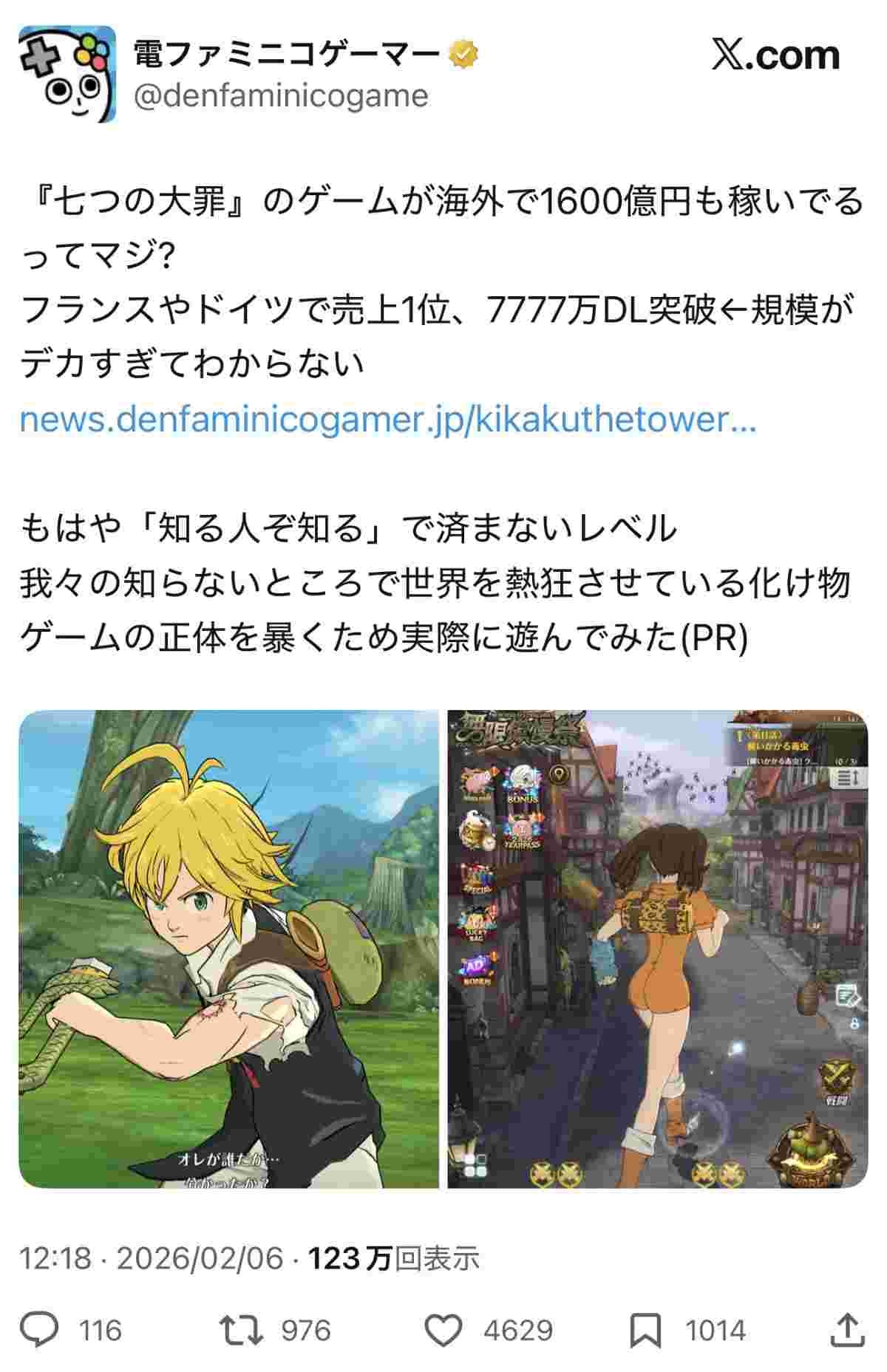 『七つの大罪』のゲームが海外で記録的な大ヒットを飛ばしているらしい。