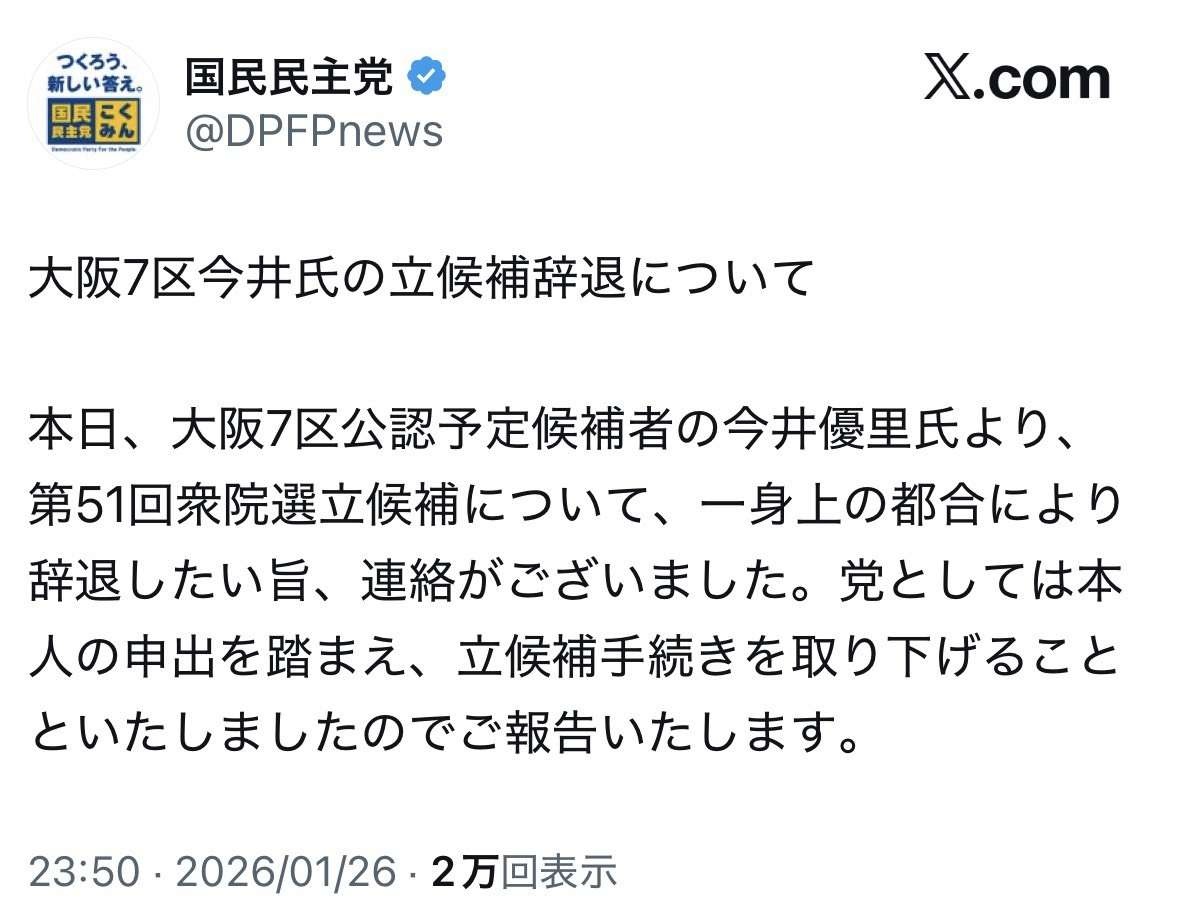 京大医学卒25歳モデルが衆院選出馬を辞退 国民民主公認で大阪7区予定も「一身上の都合」で
