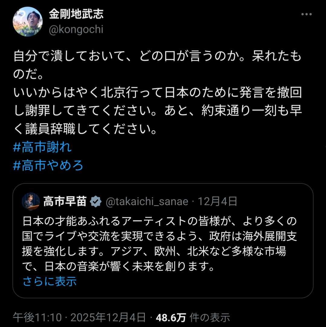 アーティストは独自の力で12億人市場を開拓してたのに本当に酷いよね高市失言