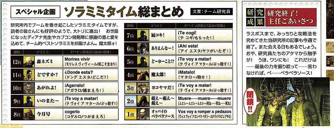 その証拠に、2005年当時の週刊ファミ通の『バイオハザード4』攻略記事にはソラミミタイムという企画コーナーが作られており、そこで村人たちのセリフを聞き間違えた編集者たちが「こう聞こえない?」とまとめたものが記録として残されているのだ。