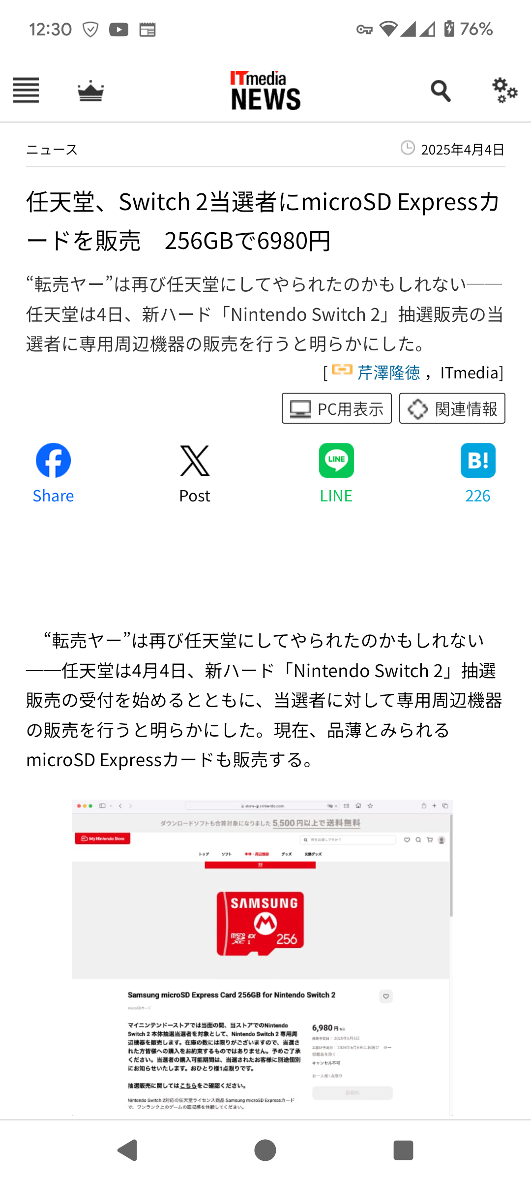 任天堂、Switch 2当選者にmicroSD Expressカードを販売 256GBで6980円