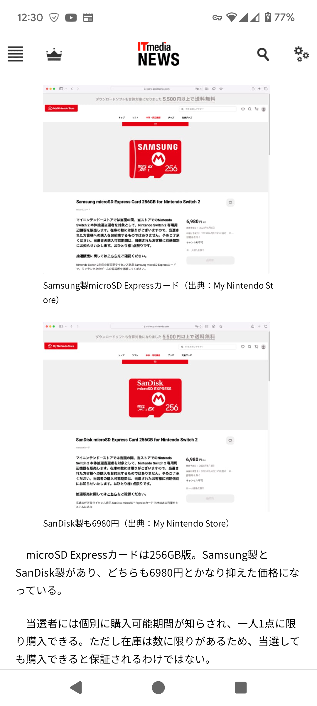 任天堂、Switch 2当選者にmicroSD Expressカードを販売 256GBで6980円
