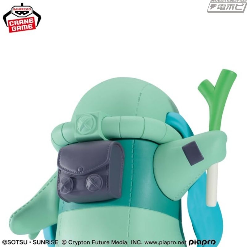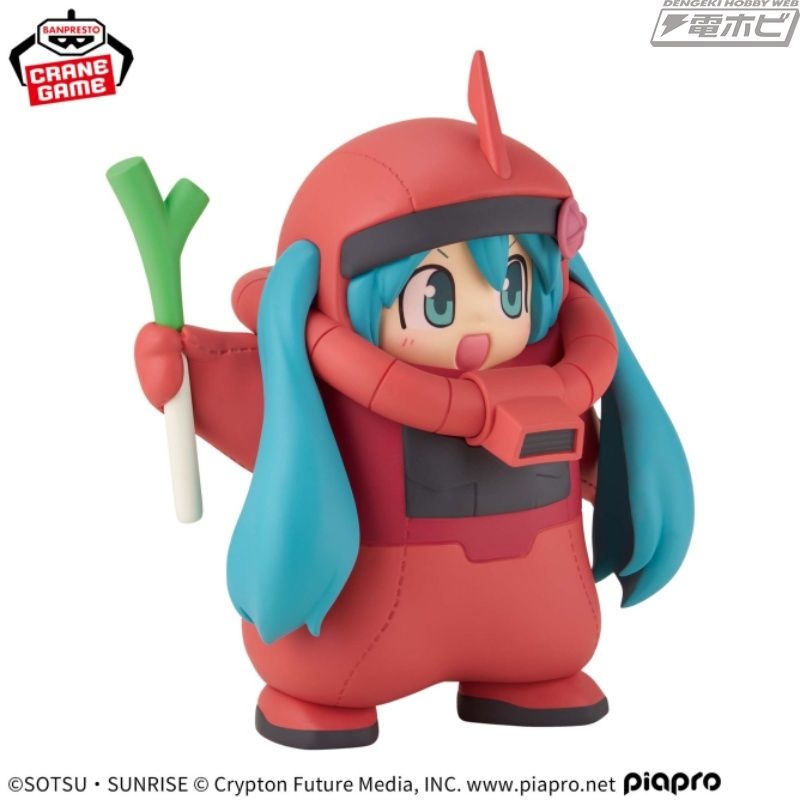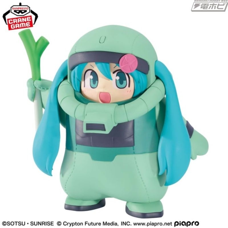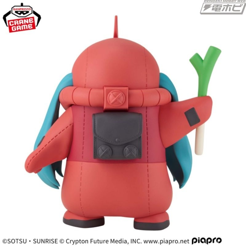 「ガンダムシリーズ45周年×初音ミク」スペシャルコラボレーション企画の商品が再登場! YouTubeのMVに登場するコラボイラストを立体化。サイズは約15センチ。ネギを掲げたザクの着ぐるみ姿が可愛いコラボ期間限定フィギュアです。
