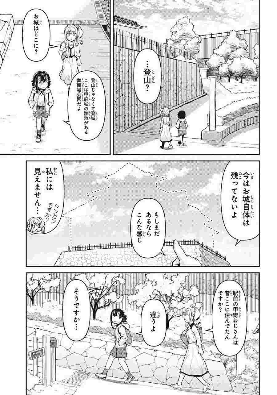 高校2年の春休み、甲府への一人旅をしていた彼女は、駅で困っている北欧出身の留学生・エレオノーラと知り合う。