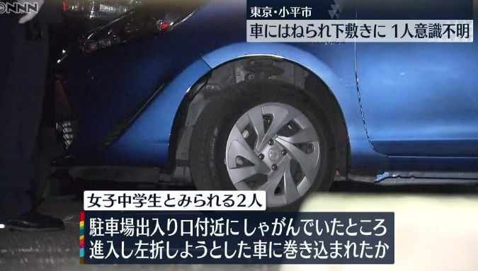 “女子中学生”2人、車にはねられる…下敷きの1人が重体7日午後、東京・小平市で、女子中学生とみられる2人が車にはねられる事故がありました。このうち1人は一時、車の下敷きになり、救出されましたが意識不明の重体だということです。