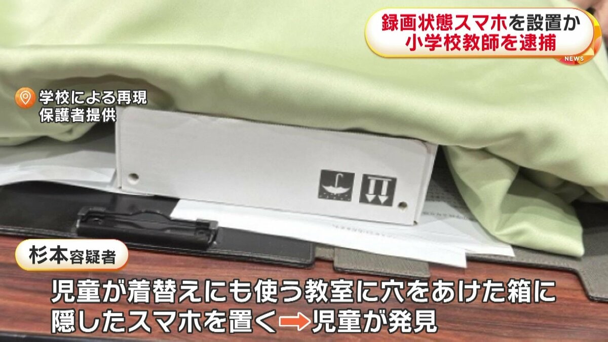 警察はスマートフォンを設置していた教員の杉本有司容疑者(32)を愛知県迷惑行為防止条例違反の疑いで逮捕しました。