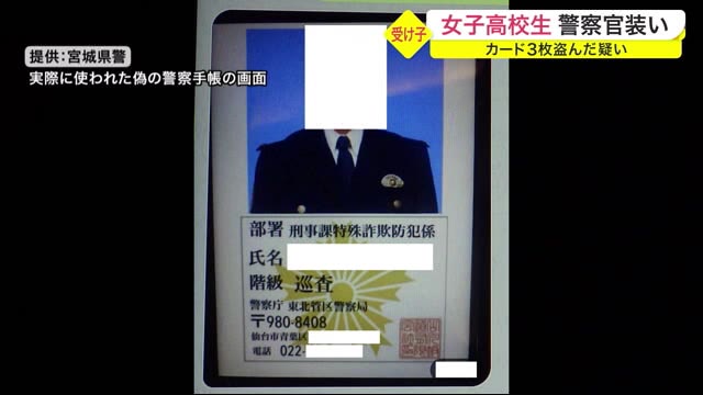 偽物の警察手帳を見せ、仙台市青葉区の60代の女性からキャッシュカード3枚を盗んだ疑いで、太白区の女子高校生が逮捕されました。