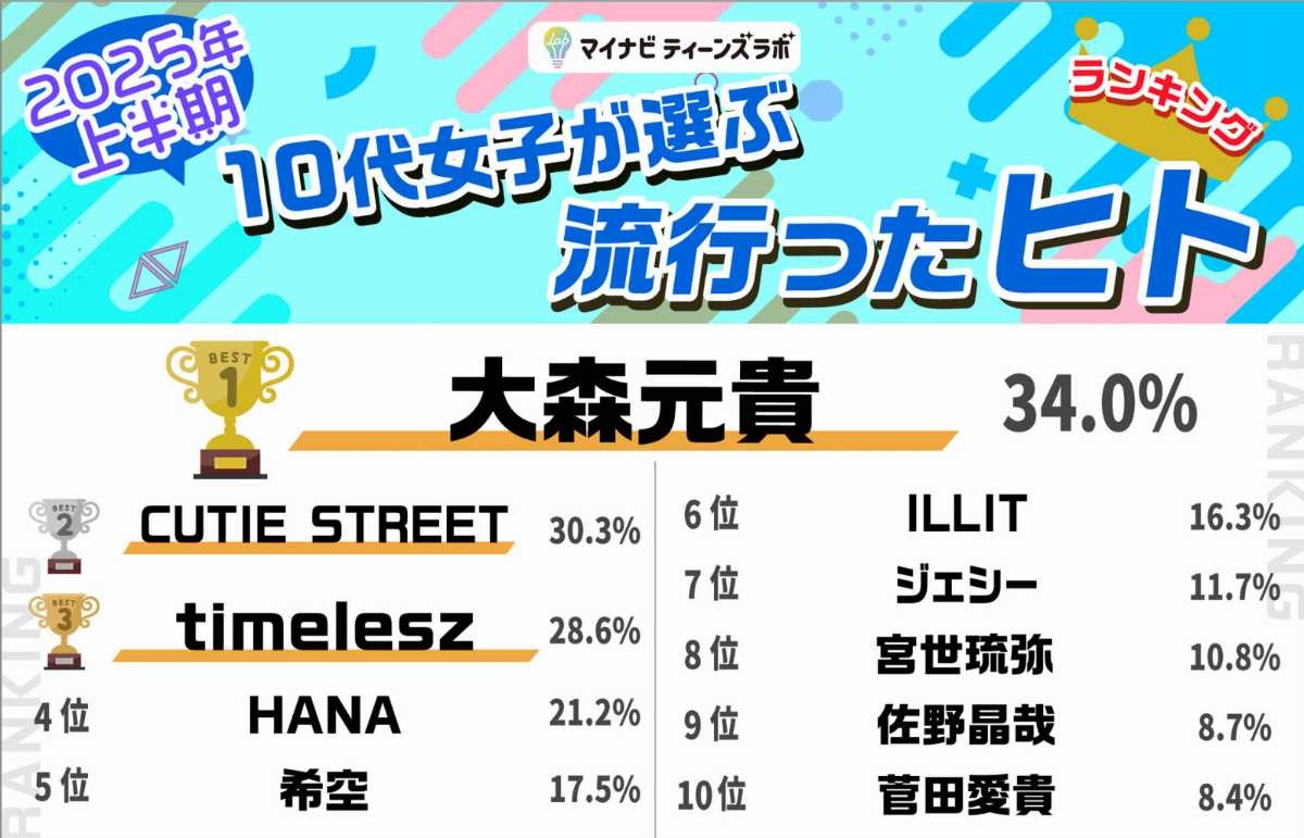 2025年上半期・10代女子が選んだトレンド、ヒト部門トップは超人気バンドのボーカル!【マイナビティーンズラボ調べ】