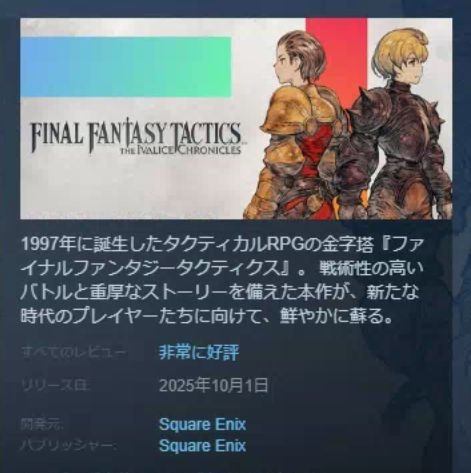 嫌儲が応援してたFFTリマスター、アンチの壮絶なネガキャンにも関わらずSteam売上トップでレビューも「非常に好評」
