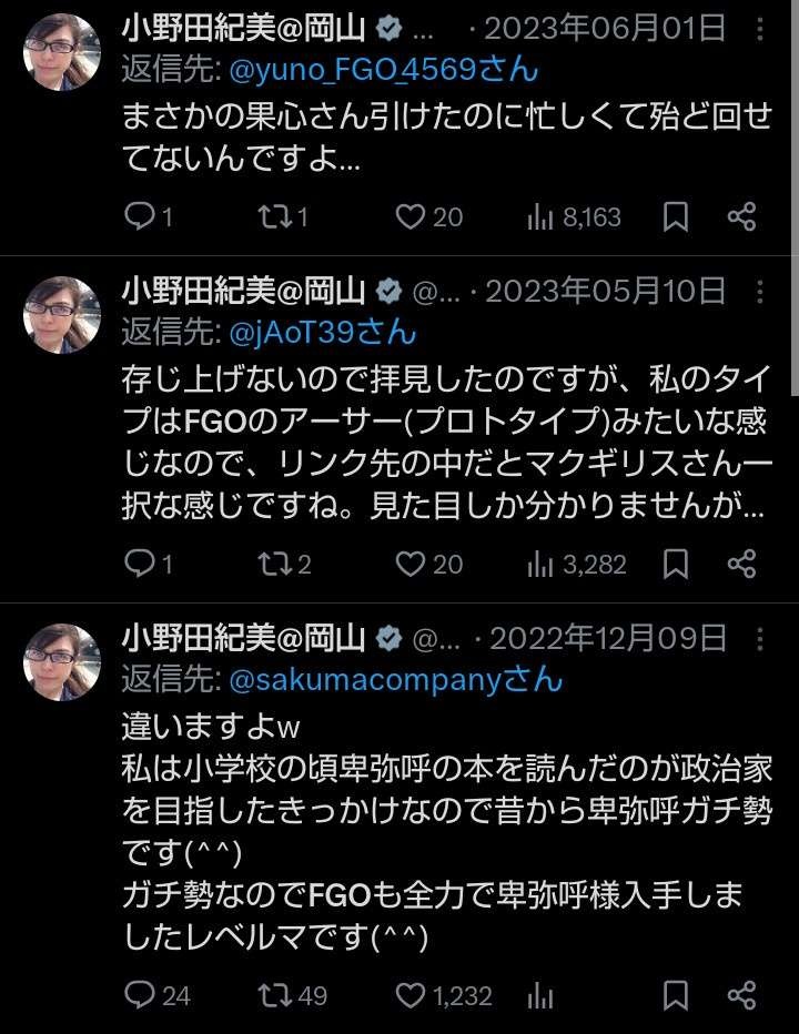 小野田紀美大臣、ソシャゲ『FGO』のヘビーユーザーだったwww