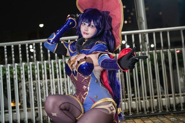 【コスプレ】フィット感のある衣装が作るシルエットが美しい!『原神』モナのくりっとした瞳が可愛い美女レイヤーが夜景に映える【写真9枚】
