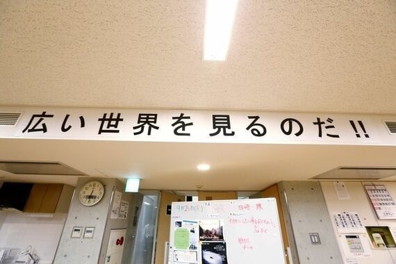 「広い世界を見るのだ!!」の標語