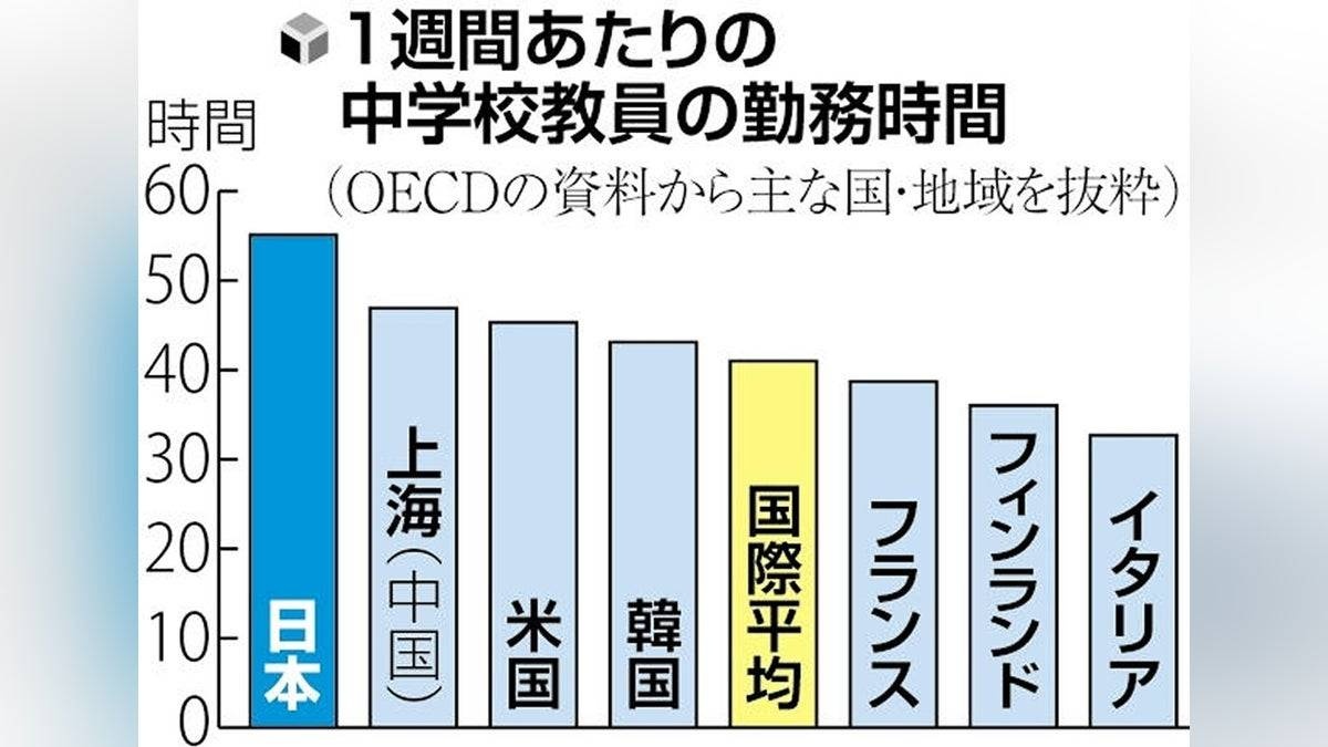 教員勤務 日本が最長 小中学校…部活・事務 負担重く OECD調査