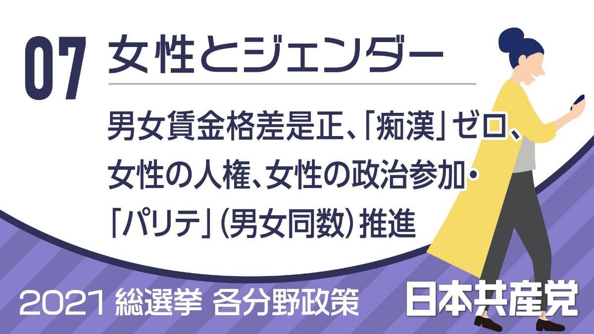 日本共産党は、日本社会で劇的に高まるジェンダー平等を求める声、運動と力を合わせて、誰もが性別にかかわらず個人の尊厳を大切にされ、自分らしく生きられる、すべての人にとって希望に満ちたジェンダー平等の社会をつくります。来たる総選挙で、ジェンダー平等を大争点の一つと位置づけ、政治の転換を目指して全力をあげます。