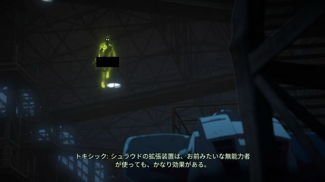PS5国内版でゲームを進めてみると、トキシックというキャラクターの股間が黒塗りのボックスで覆われる状態に。スイッチ版と同じく、視覚情報の検閲オプションがデフォルトで適用され、それが解除できない仕様のようです。