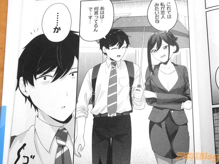 コミカライズ『くたびれサラリーマンな俺、7年ぶりに再会した美少女JKと同棲を始める』は、HJ文庫から出ている同名のラノベを原作にし、連載開始時のラノベニュースオンラインによると『日々の仕事にくたびれていたサラリーマンが、7年前に結婚する約束をした年下の幼なじみに突然プロポーズされて始まる、押しかけ同棲ラブコメディ』という、サラリーマン・天江雄也&美少女JK・白鳥葵などが登場するお話。
