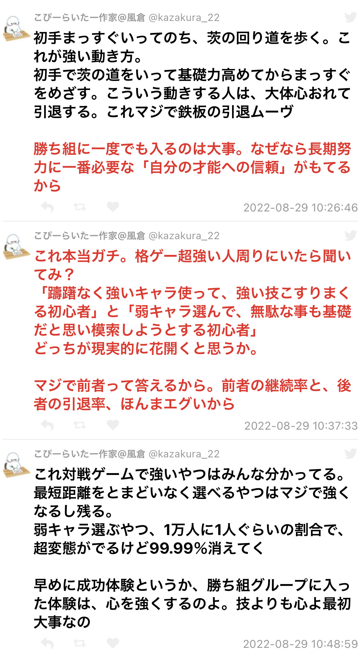 - どうやって勝つか練習と試行錯誤を重ねるやつが上手くなるだけ