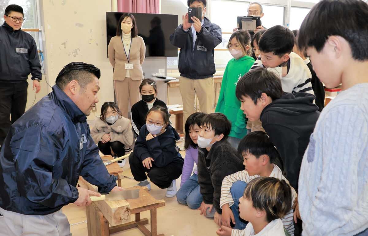 大工さん腕まくり 宮城・名取の館腰小で建設職組合が特別授業 | 河北新報オンライン