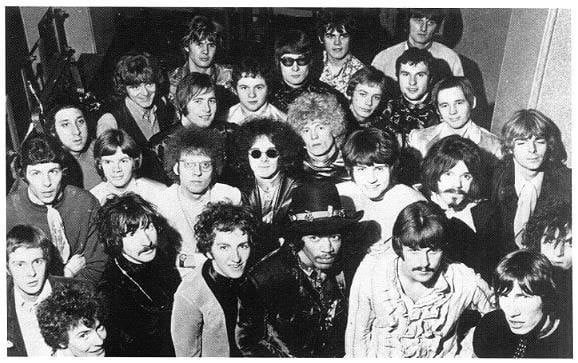 1967年11月から12月にかけてイギリス中を回ってたジミヘン&ピンクフロイド&〇〇などによるパッケージツアー(コンサート)での集合写真