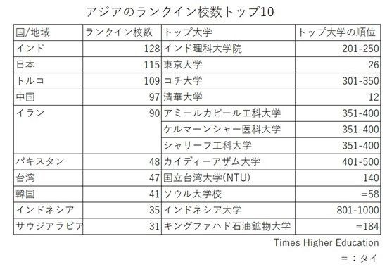アジアのランクイン校数トップ10
