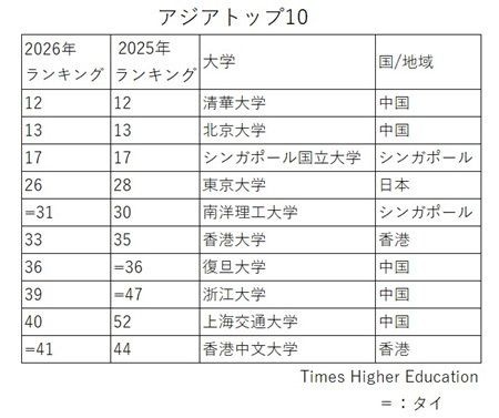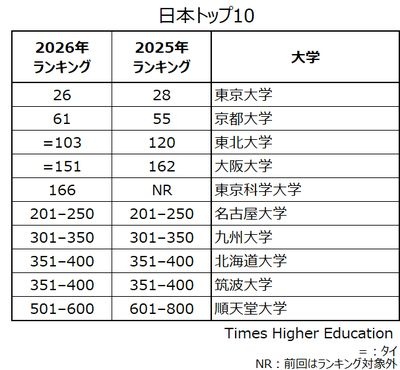 THE世界大学ランキング2026―東大は26位、京大は61位