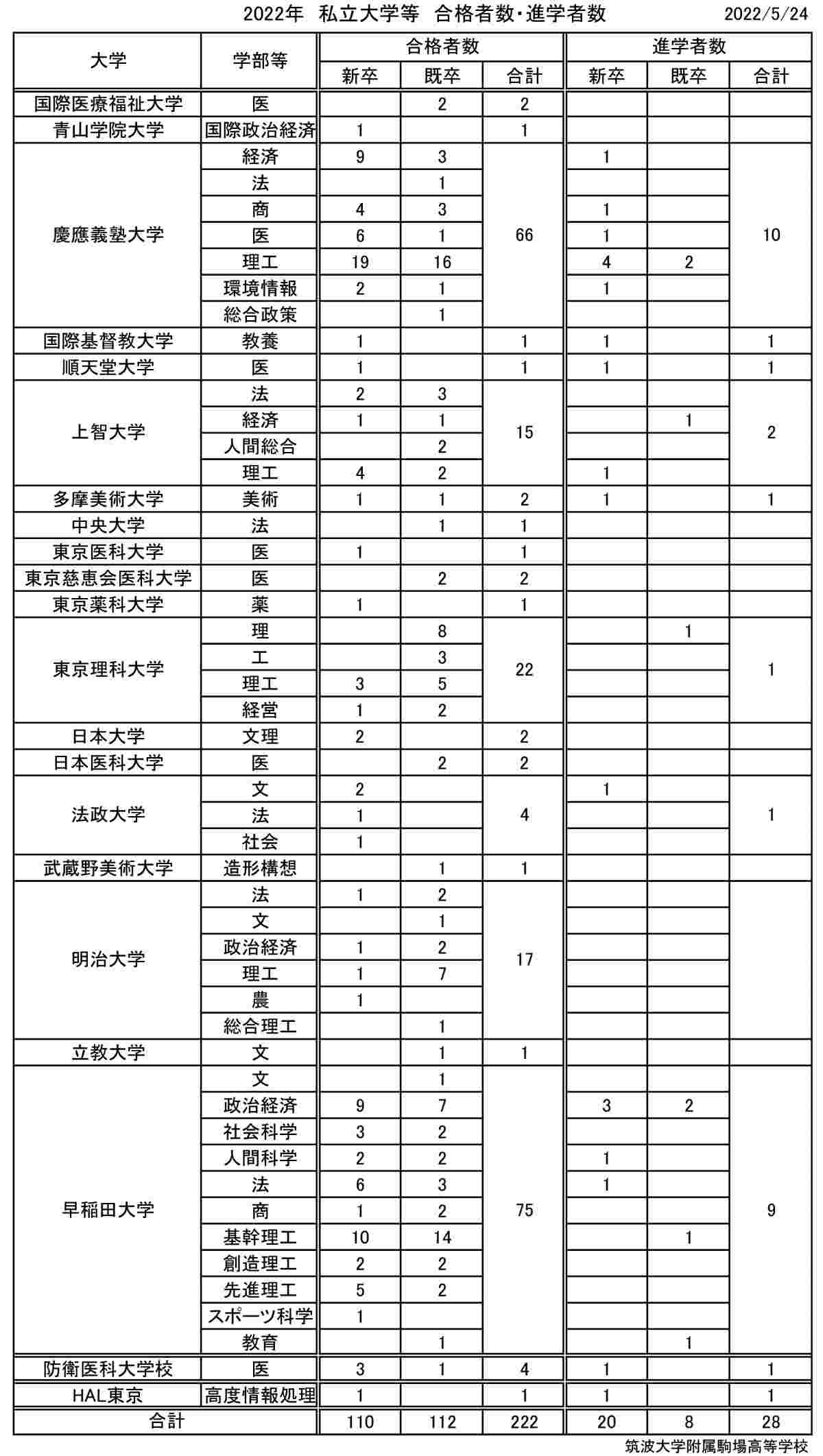 あと筑駒から2022年にHAL東京に進学した人もいる