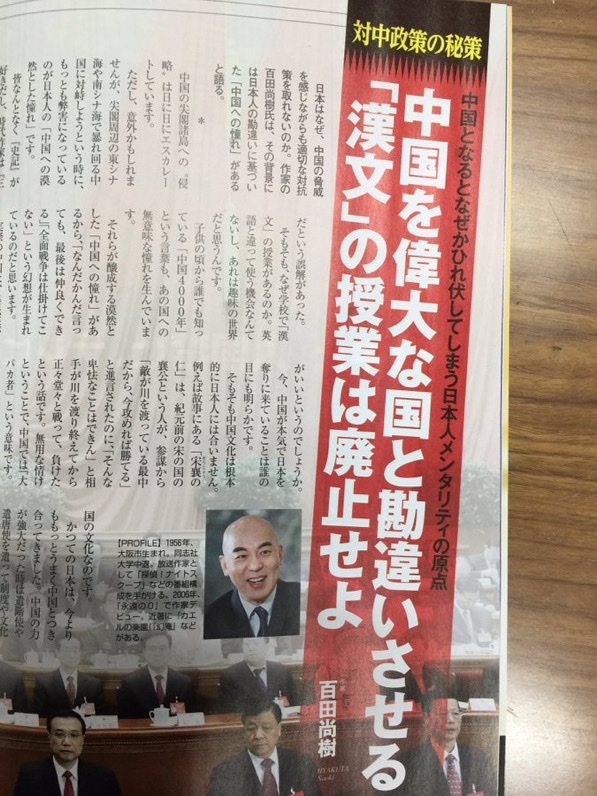 百田尚樹「中国を偉大な国と勘違いさせる為、漢文の授業を廃止するべき」