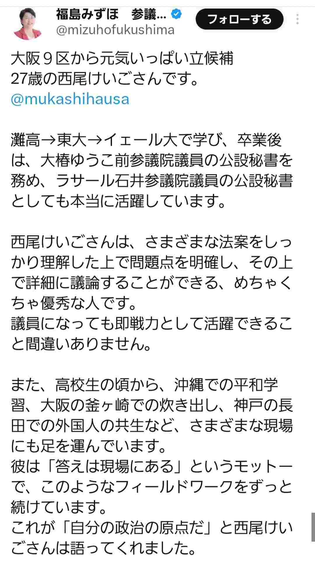 灘高 東大 イェール大で学び、卒業後は、大椿ゆうこ前参議院議員の公設秘書を務め、ラサール石井参議院議員の公設秘書 としても本当に活躍しています。