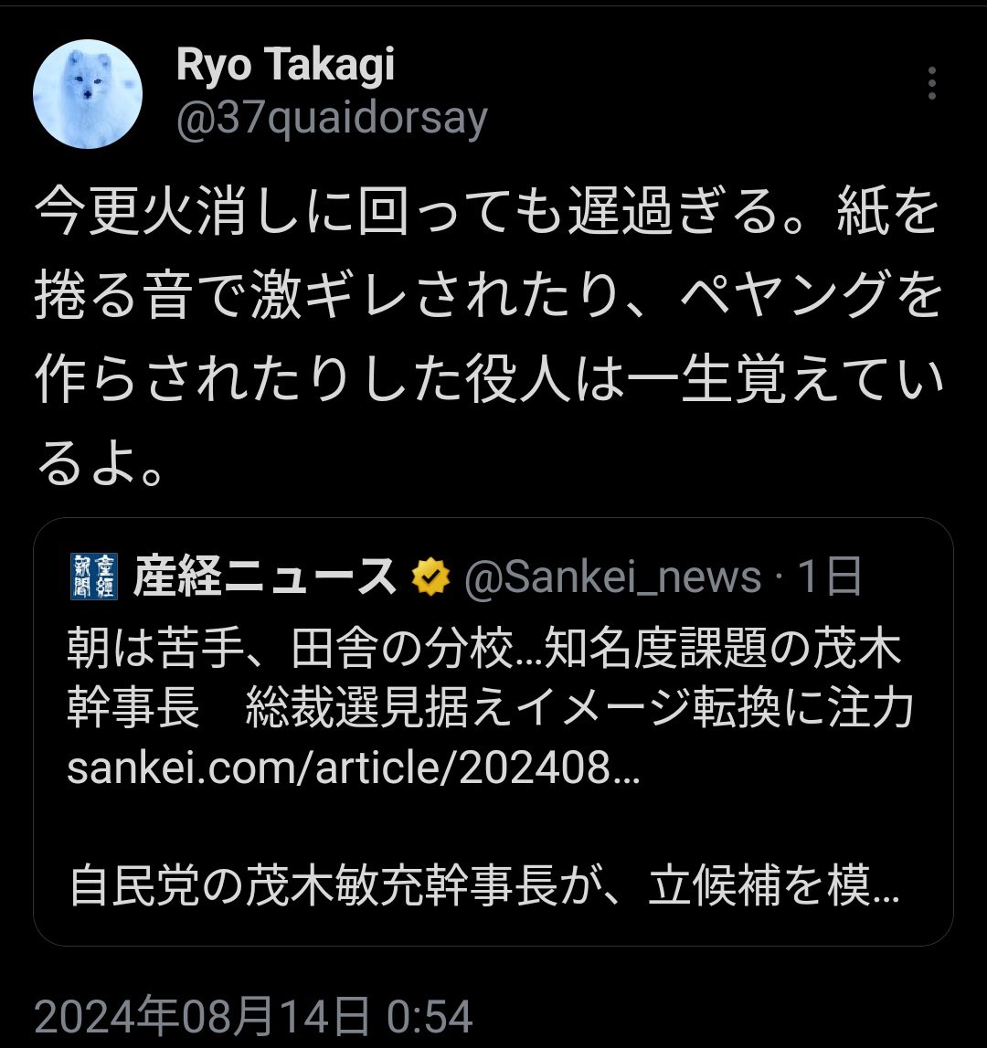 茂木と河野はパワハラがなぁ