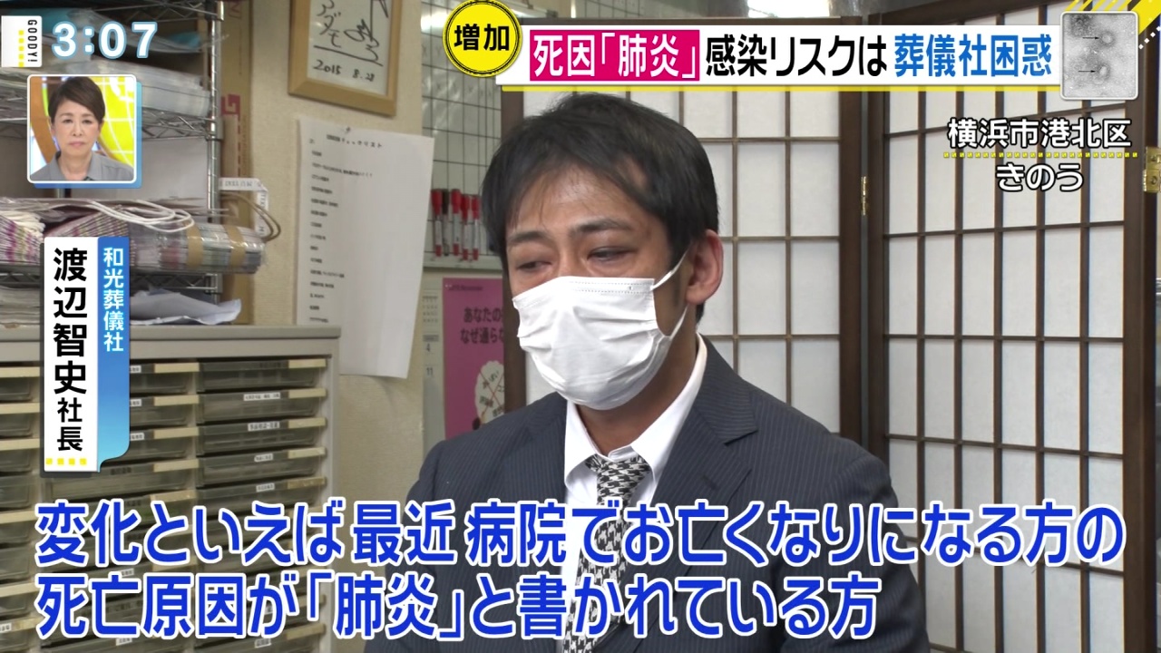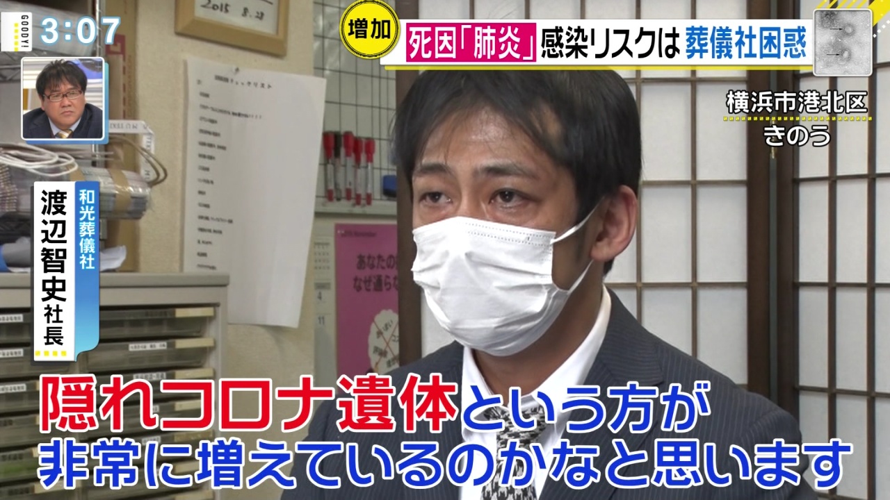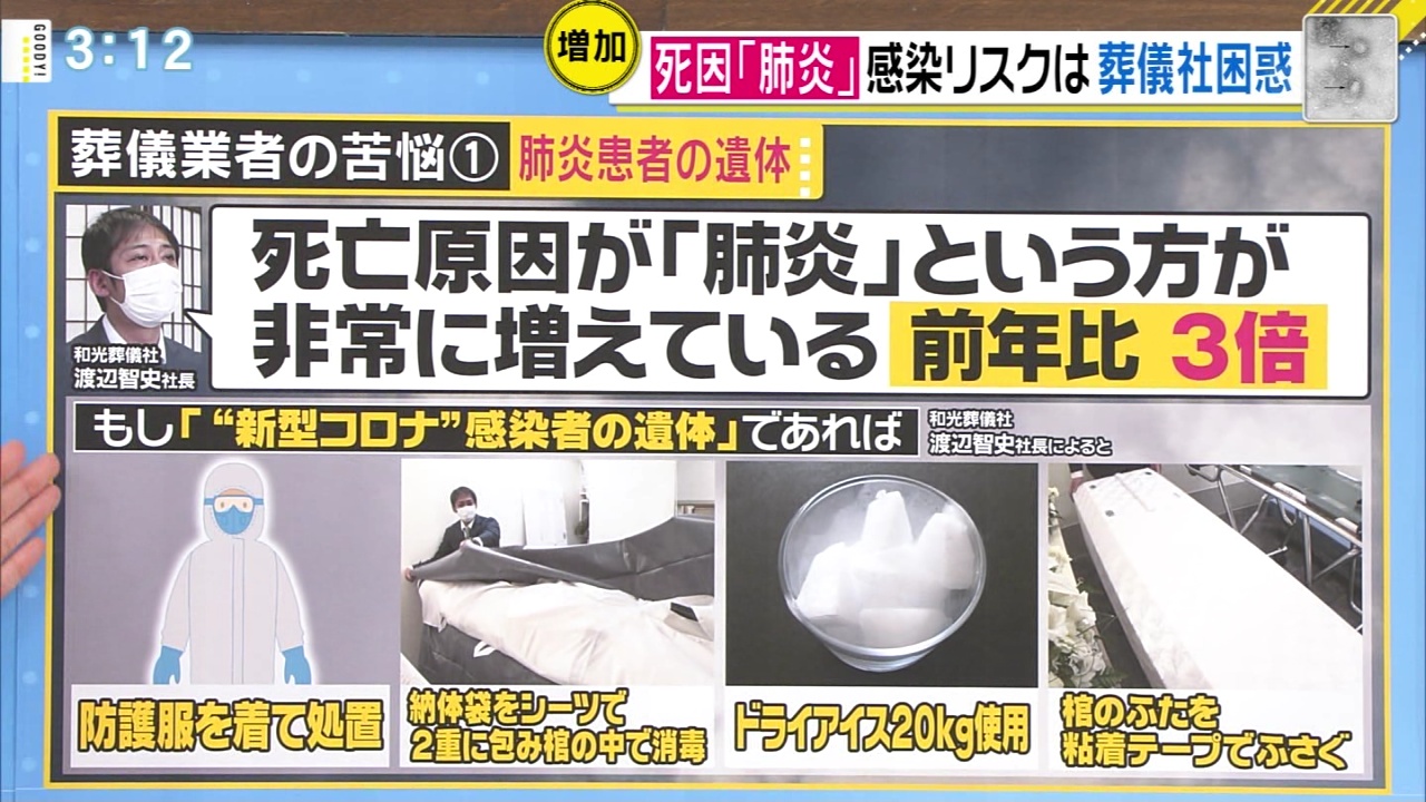 葬儀社「最近亡くなられた方の死亡原因肺炎が急増してる 隠れコロナ遺体としか思えない それも3倍以上・・・言ってよかったのかな?」