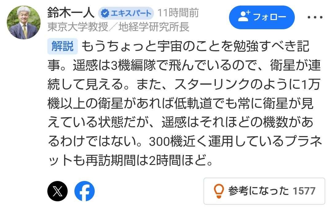 教授さんが軍事衛星の数知らないだけだろ