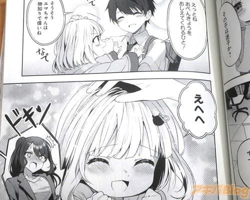 今回発売になったコミカライズ「迷子になっていた幼女を助けたら~」1巻【AA】には、第1話から第6話と「巻末おまけ漫画 先生たちの休日」を収録し(もくじ)、裏表紙は『美少女(妹)を助けたら、美少女(姉)と急接近!?』、オビ謳い文句は『清楚な姉とおてんばな妹、英国育ちの美人姉妹とお隣同士に!?』、『甘々でじれったいお隣ラブコメディ!』だった。