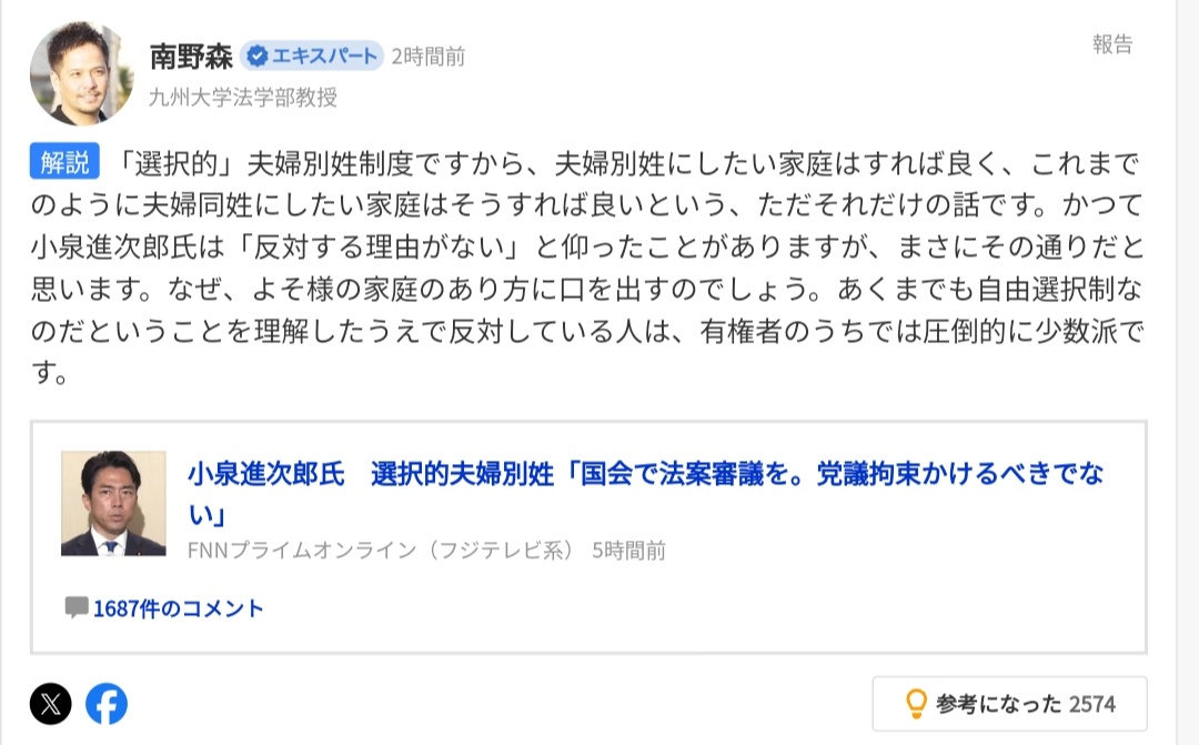 選択的夫婦別姓に反対する理由なくね?「選択的」なんだからいいじゃん大学教授もそう言ってる
