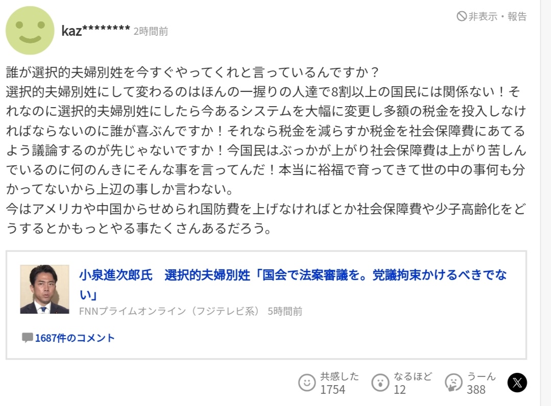 - 別姓ほざいてるやつの自分のことだけ考えて子供のこと考えてない感は異常